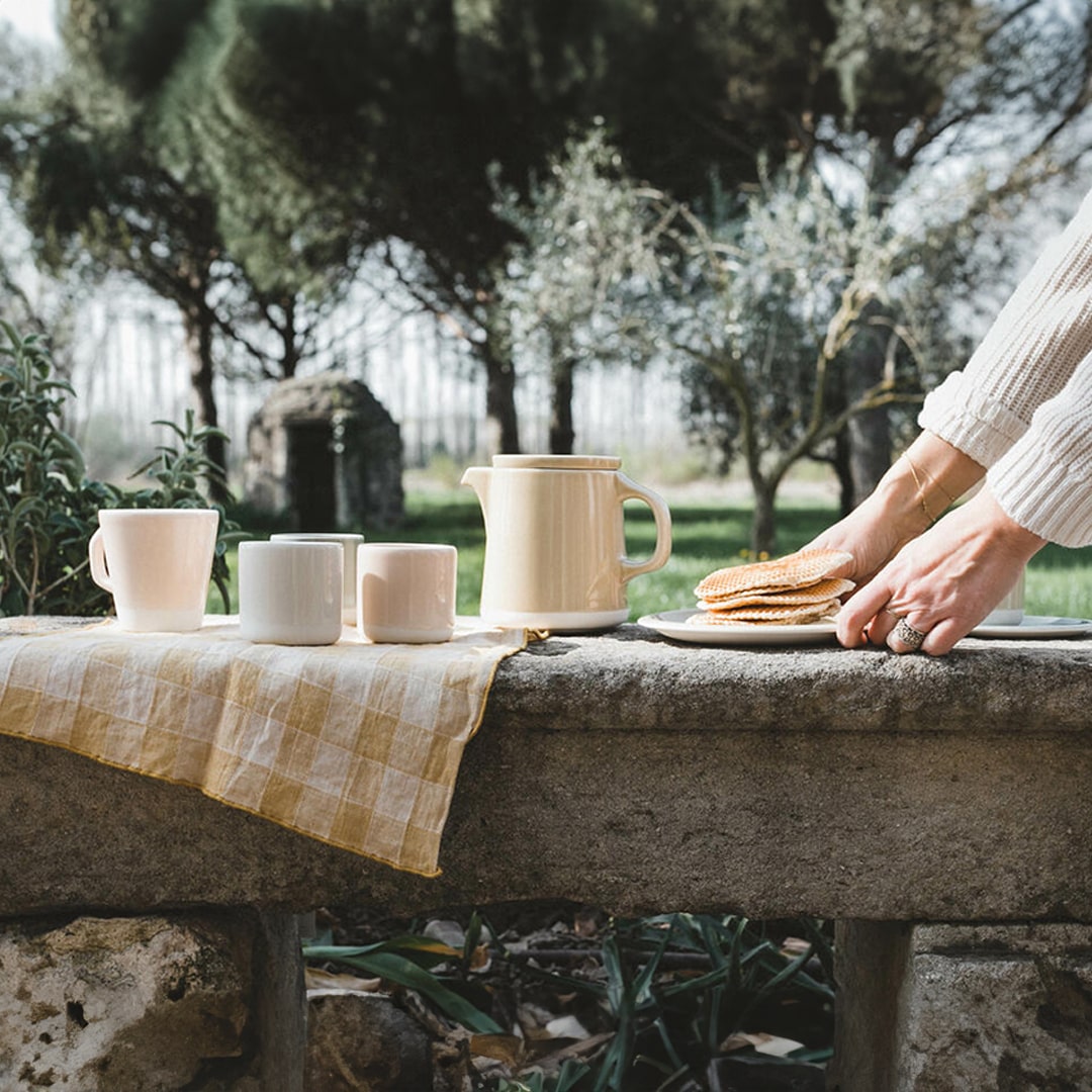 Glazed natural stoneware with beautiful glazes. Non-porous and does not chip.