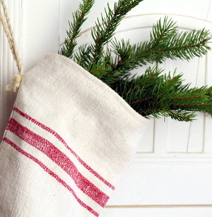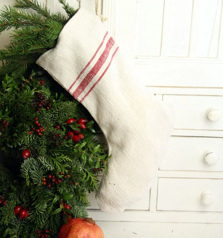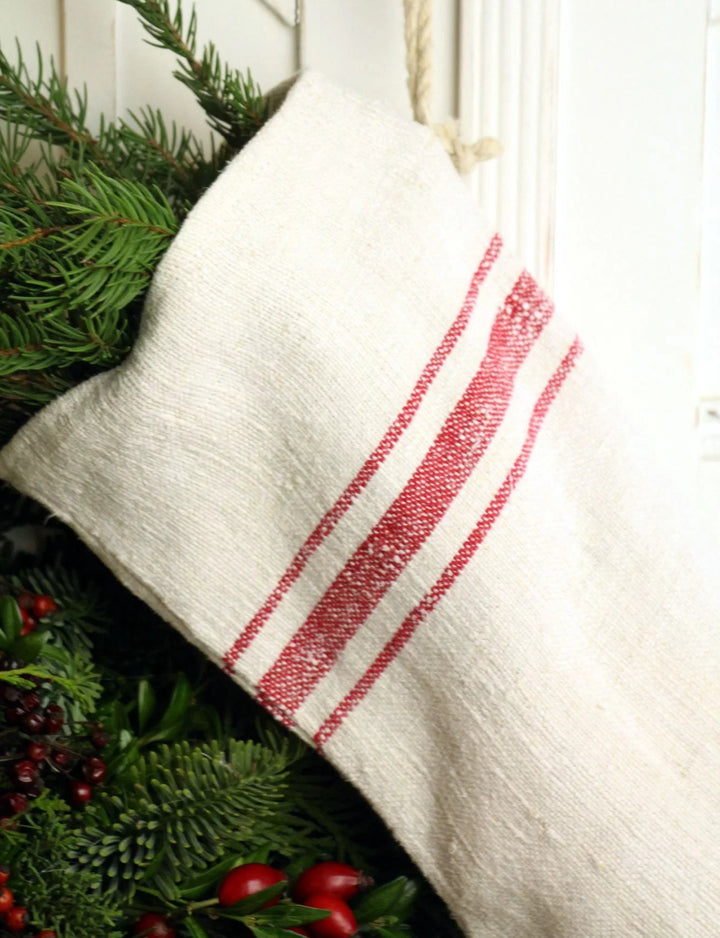 A unique and antique handwoven linen Christmas stocking. The linen was made in France around 1900-1909 and is 100% organic and in excellent condition.