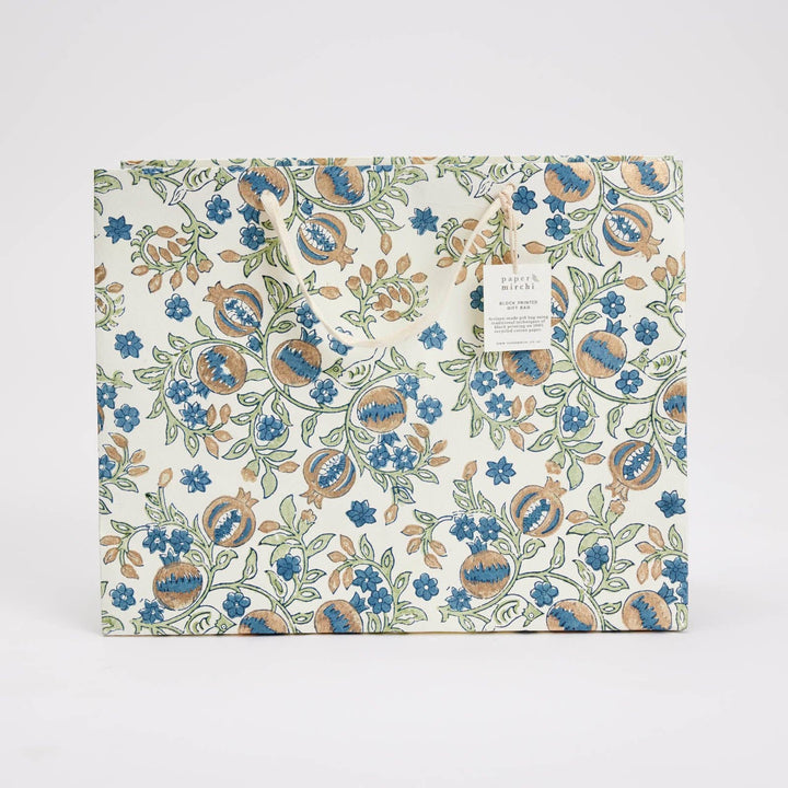 Paper Mirchi - Hand Block Printed Gift Bags (Large) - Indigo