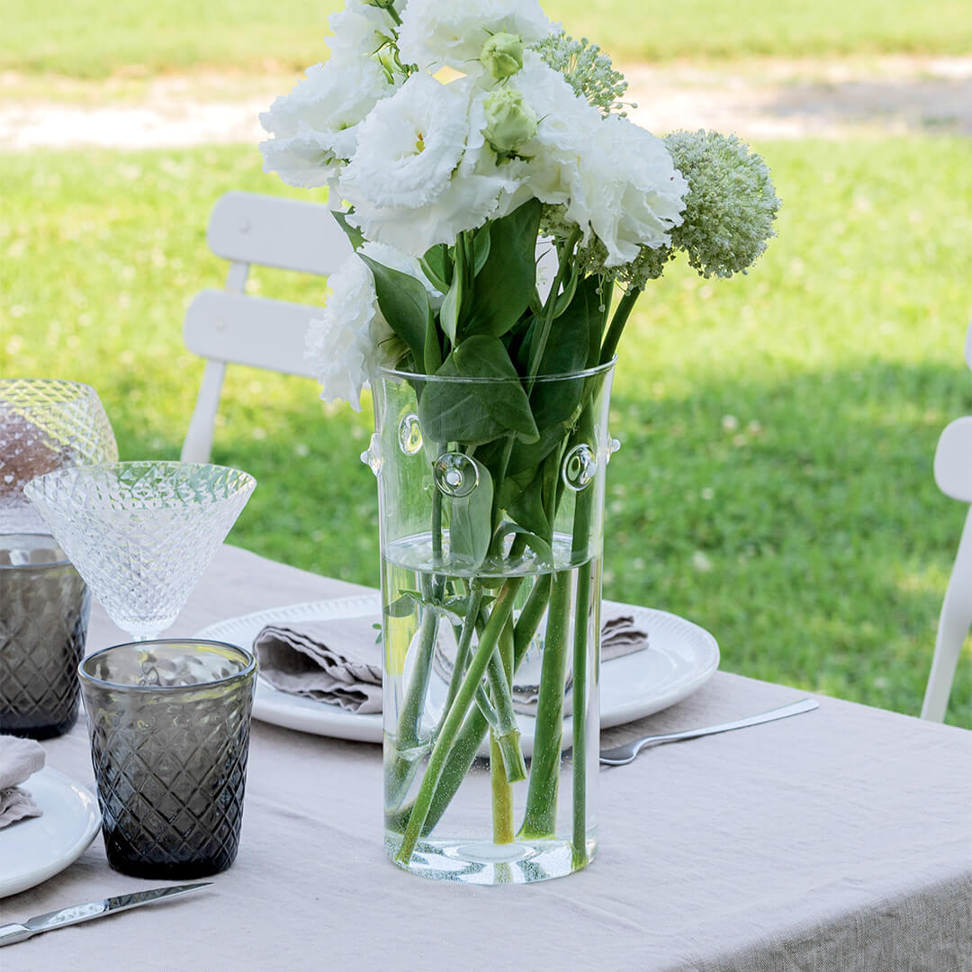 Vaso in borosilicato fatto a mano, ispirato alle conchiglie del Mar Mediterraneo.