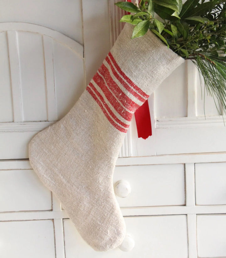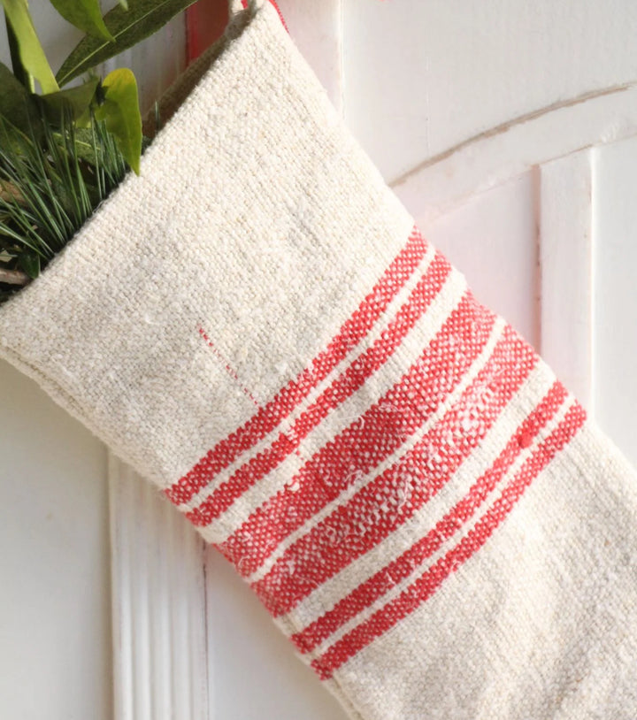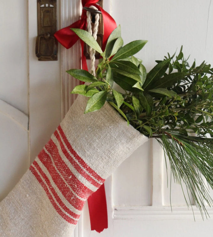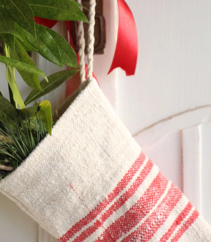 A unique and antique handwoven linen Christmas stocking. The linen was made in France around 1900-1909 and is 100% organic and in excellent condition.