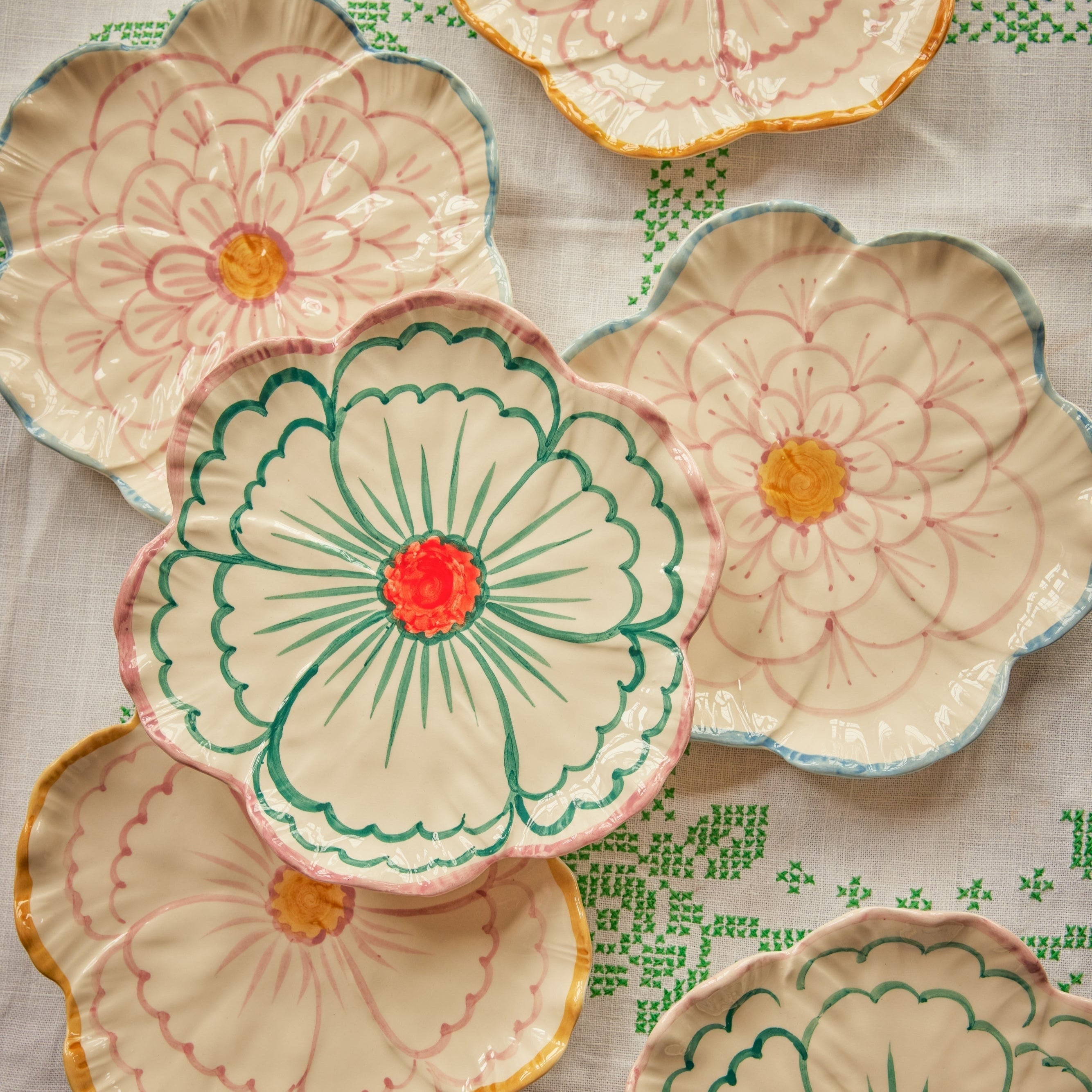 Set a beautiful cake table with this lovely ceramic cake plate. It is hand-painted in a vintage look with a motif of gorgeous orange flowers and a dark blue edge. Each plate is hand-painted by a group of amazing Portuguese women, making every single plate truly unique. We think it’s so charming! Pssst... it also comes in many other cute designs.