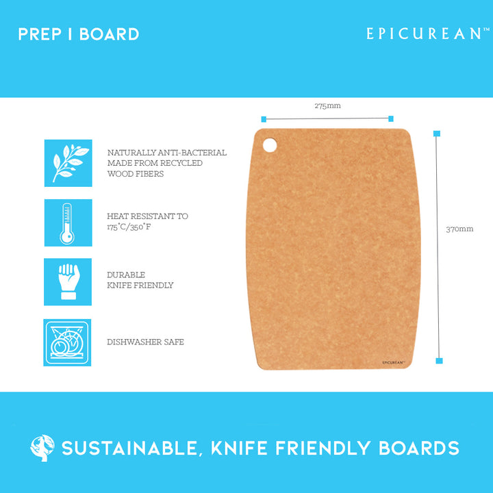 Sustainable, recycled hygienic Prep Boards with a loop to hang on the kitchen racks or for ease of selection from storage.