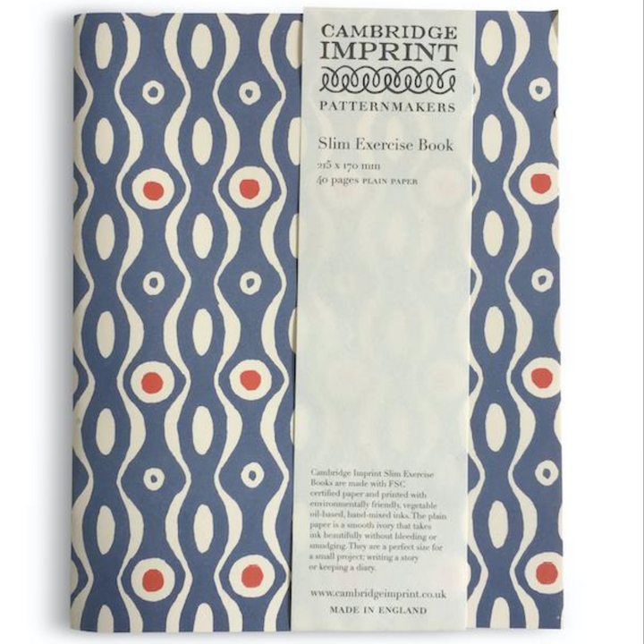 Cambridge Imprint Slim Exercise Books are modelled on old-fashioned school exercise books. They have covers of heavy, 170 gsm patterned paper, without any text or logo, and inside there are forty pages of plain 90gsm ivory paper and a discreet Cambridge Imprint stamp on the inside back cover.